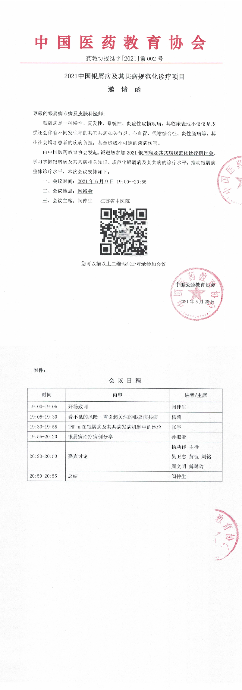 | 药教协授继字[2021]-第002号-2021中国银屑病及其共病规范化诊疗项目-邀请函 | |||||