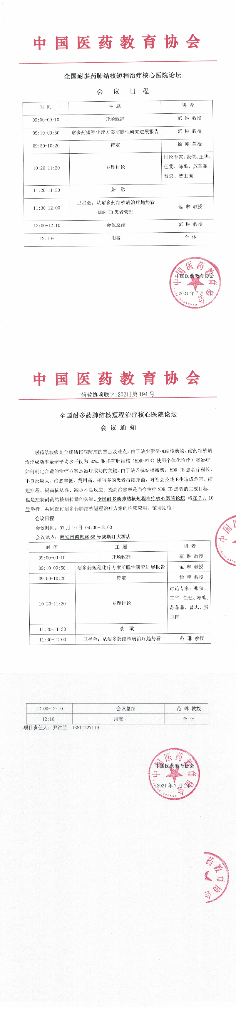 | 药教协项联字[2021]-第194号-全国耐多药肺结核短程治疗核心医院论坛日程 | |||||