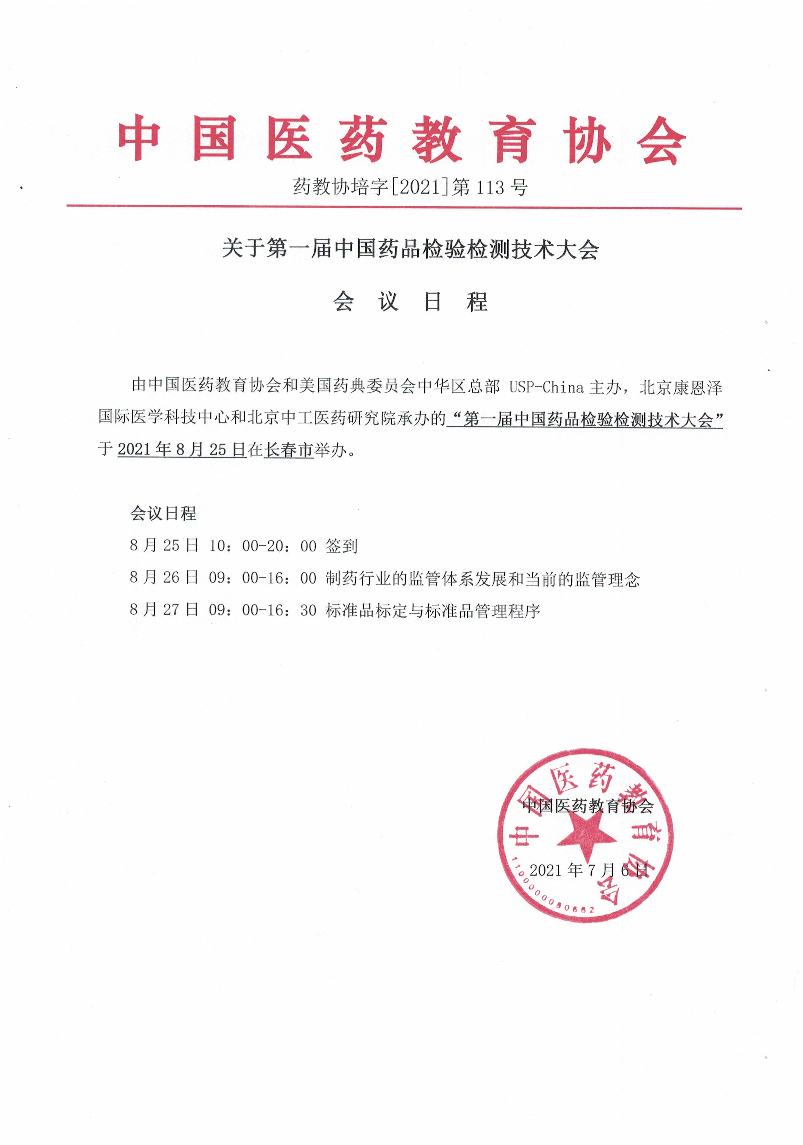 | 药教协培字[2021]-第113号-2-药教协培字[2021]-第113号-第一届中国药品检验检测技术大会-日程-长春 | |||||