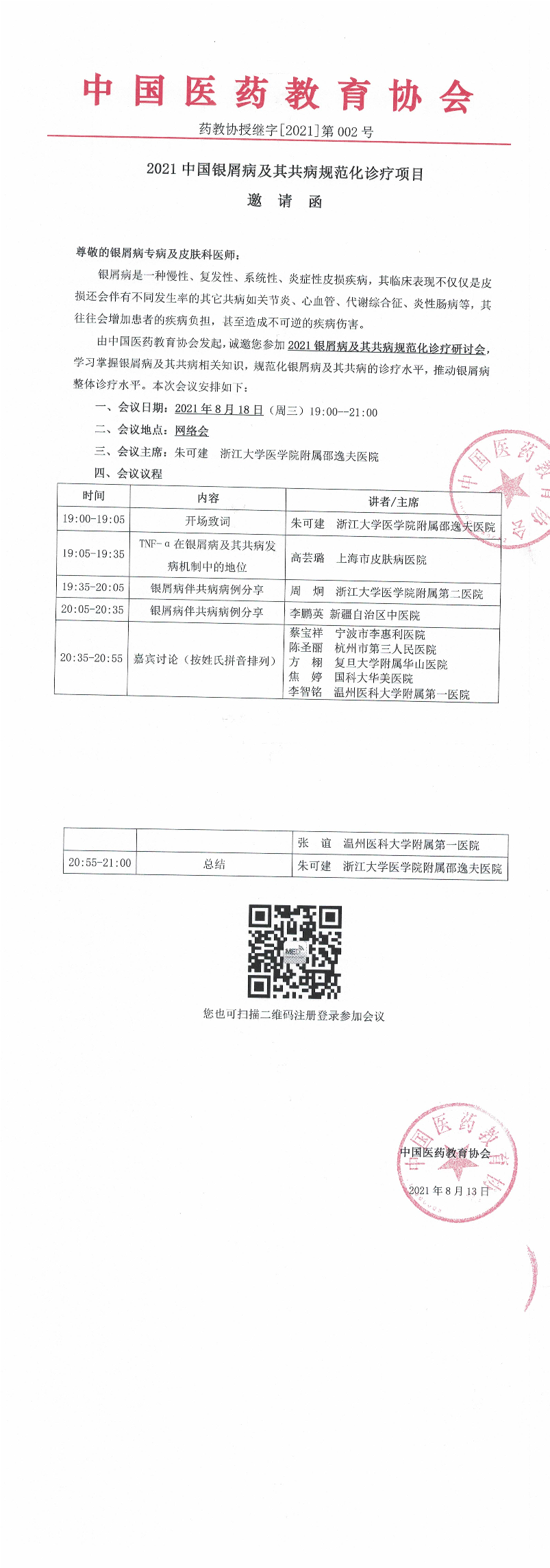 | 药教协授继字[2021]-第002号-药教协授继字【2021】第002号-2021中国银屑病及其共病规范化诊疗项目-邀请函 | |||||