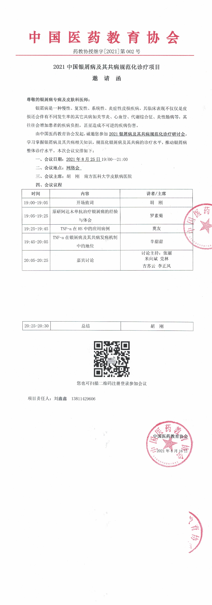 | 药教协授继字[2021]-第002号-药教协授继字[2021]-第002号-2021中国银屑病及其共病规范化诊疗项目邀请函-胡刚 | |||||