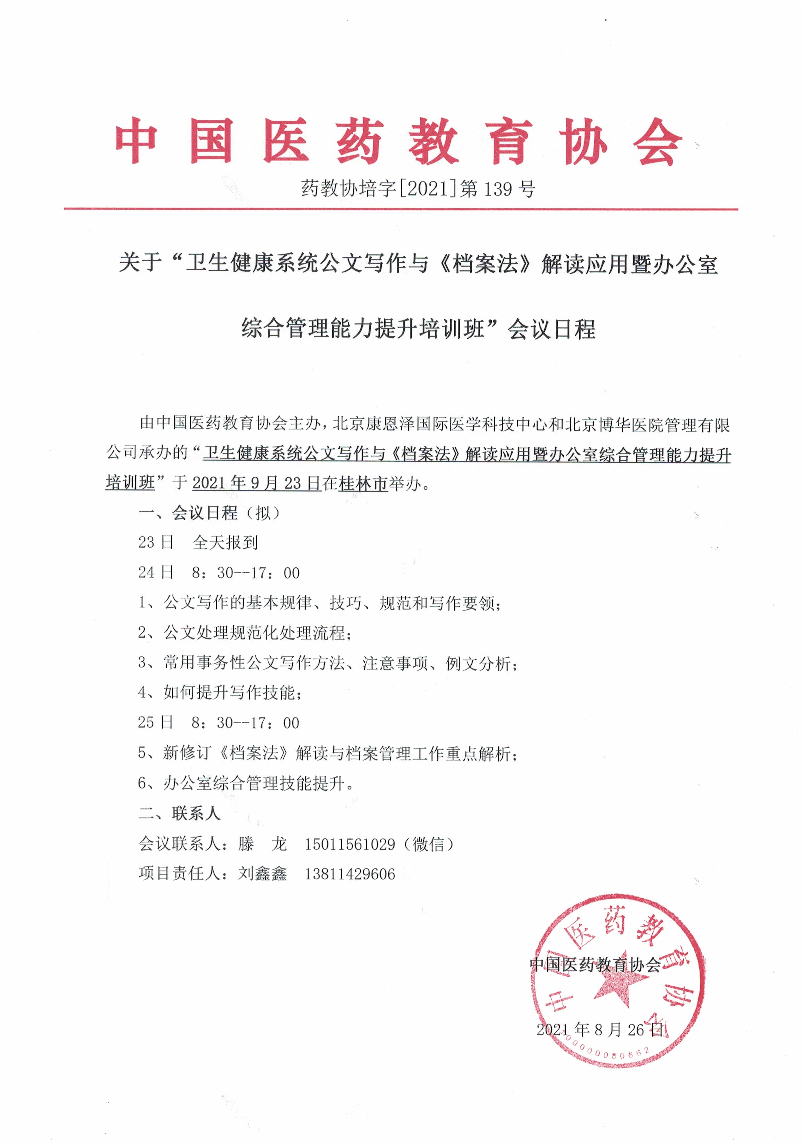 | 药教协培字[2021]-第139号-4-药教协培字【2021】第139号-卫生健康系统公文写作与《档案法》解读应用暨办公室综合管理能力提升培训班-日程-桂林 | |||||