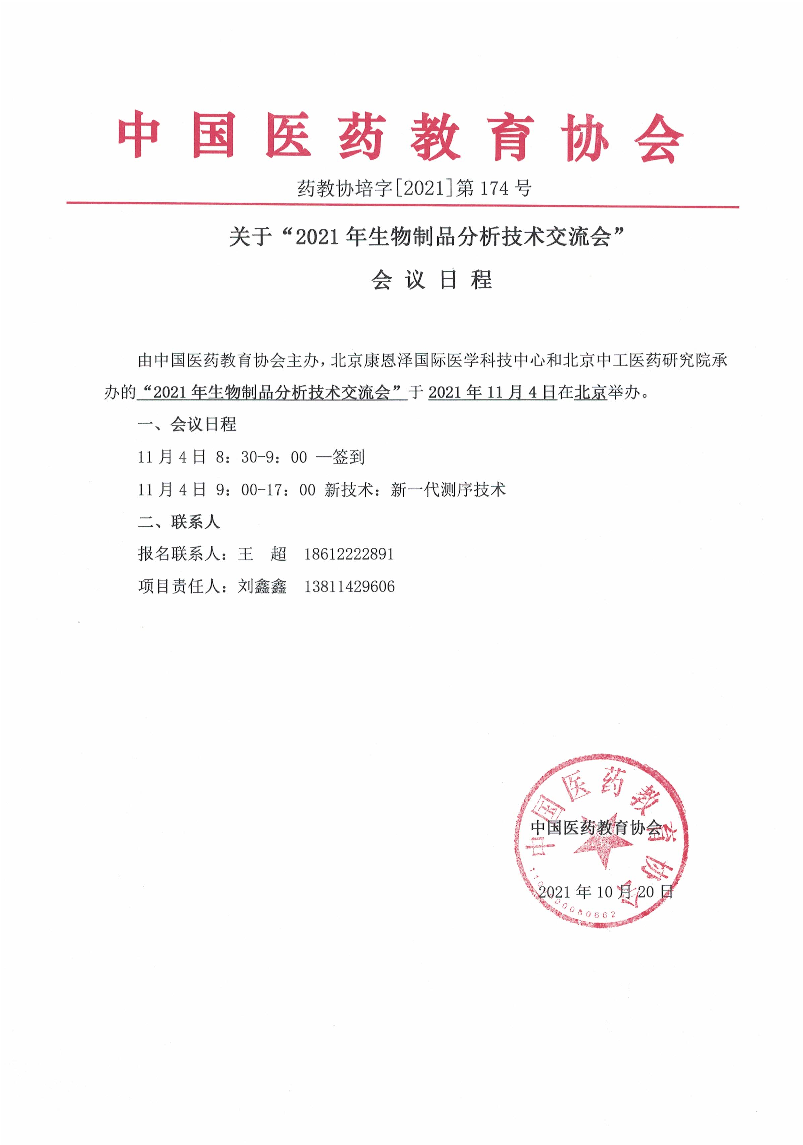 | 药教协培字[2021]-第174号-2021年生物制品分析技术交流会-日程-北京 | |||||