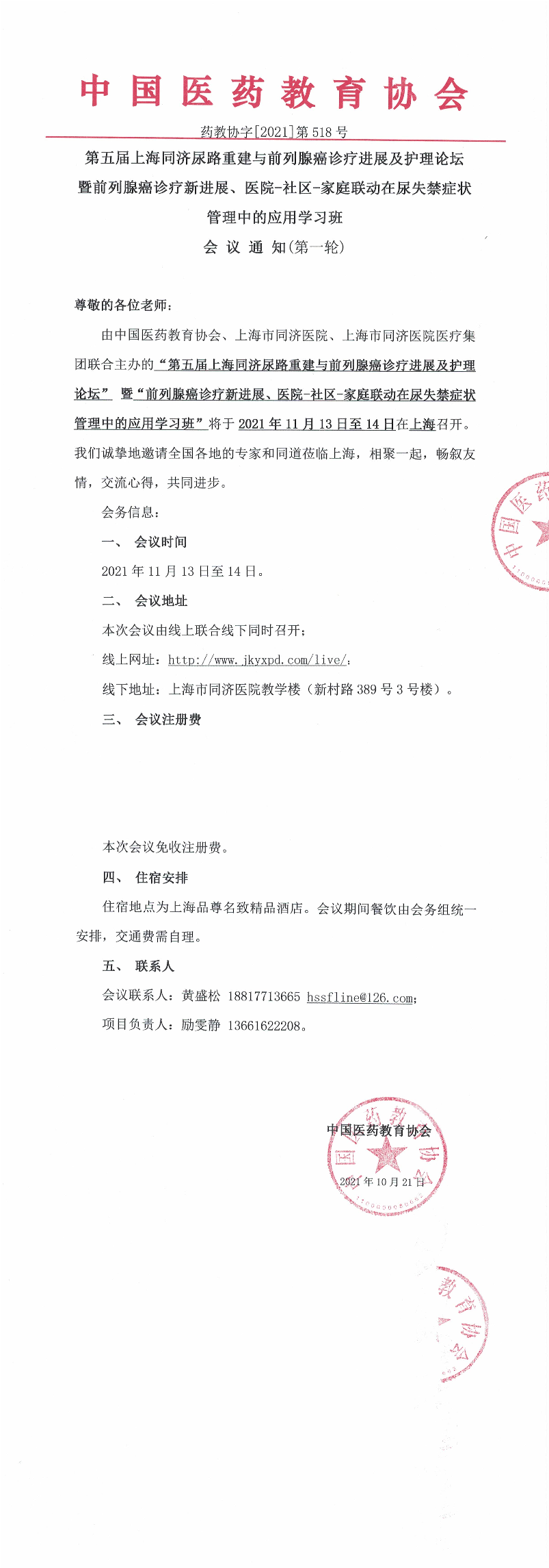 | 药教协【2021】-第518号-药教协字518号--第五届上海同济尿路重建与前列腺癌诊疗进展及护理论坛 | |||||