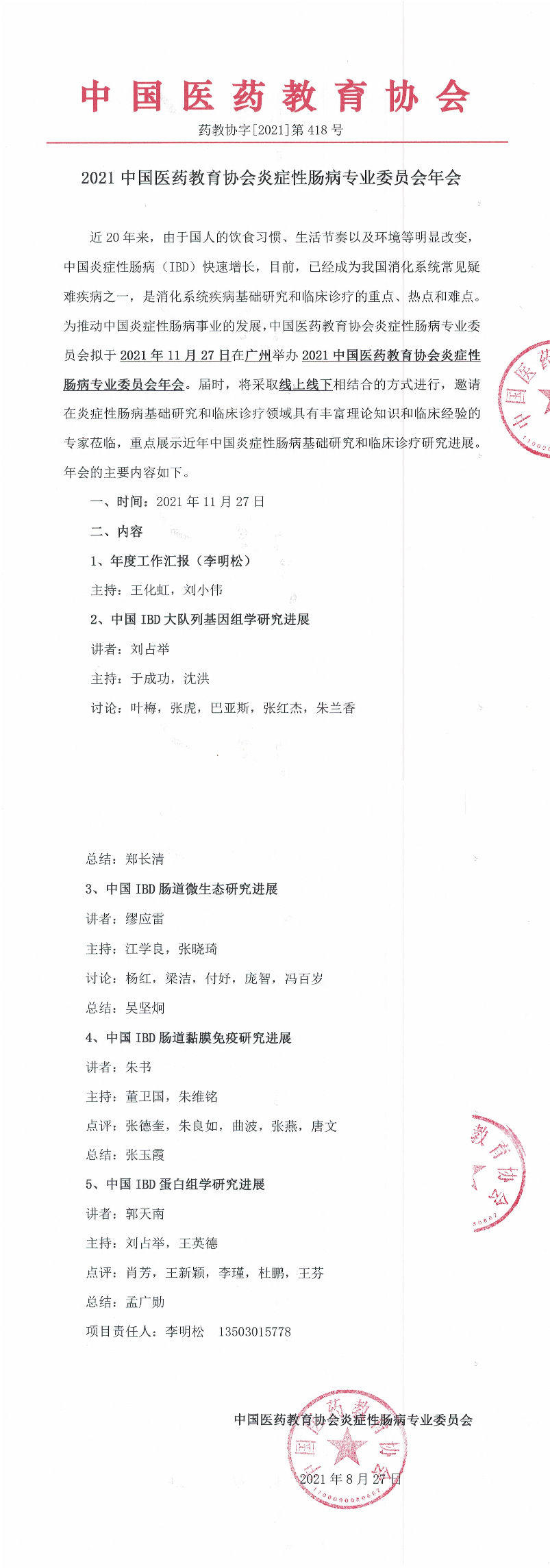 | 药教协【2021】-第418号-药教协字418号--2021中国医药教育协会炎症性肠病专业委员会年会 | |||||