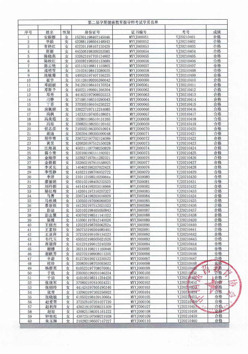 | 公示-第4号-母婴-第二届孕期健康教育指导师学员考试成绩 | |||||