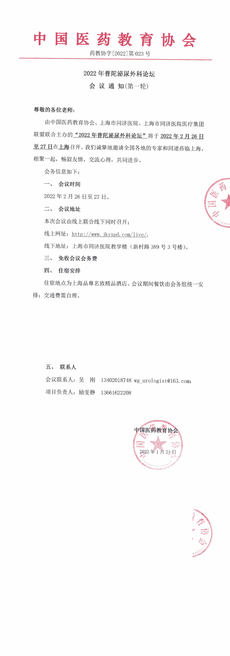 | 药教协【2022】-第023号-2022年普陀泌尿外科论坛 | |||||