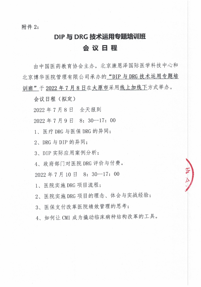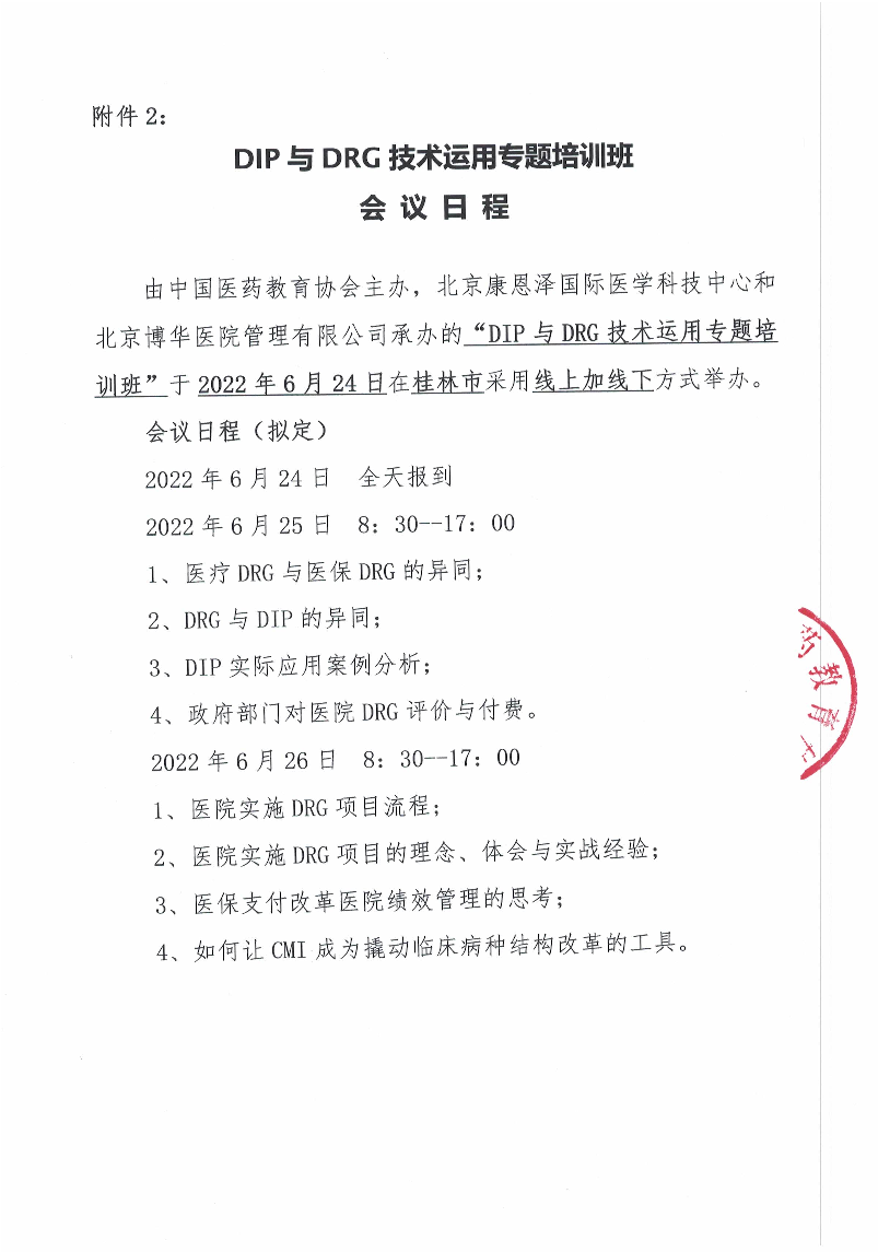 | 药教协培[2022]-第135号-关于“DIP与DRG技术运用专题培训班”的日程 | |||||