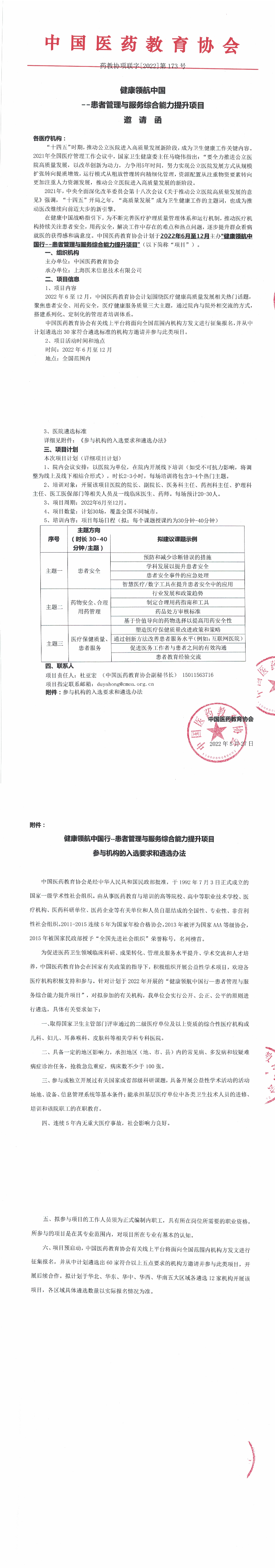 | 药教项联【2022】-第173号-健康领航中国行—患者管理与服务综合能力提升项目-邀请函 | |||||