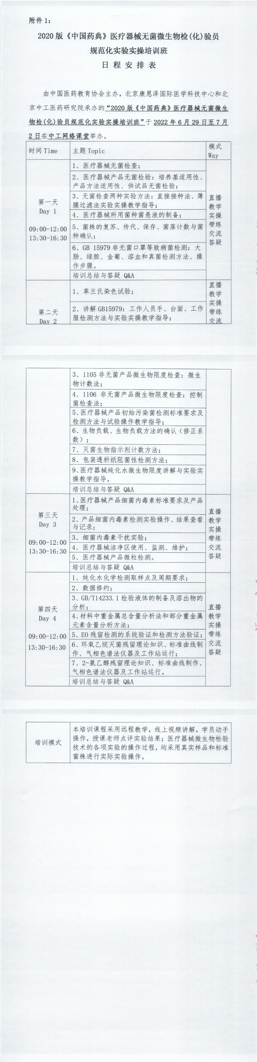 | 药教协培[2022]-第155号-2020版《中国药典》医疗器械无菌微生物检(化)验员规范化实验实操培训班6.29-会议日程 | |||||