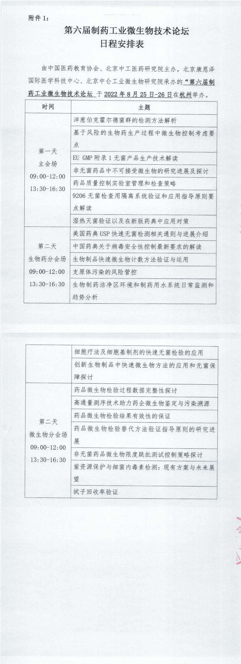 | 药教协培[2022]-第157号-第六届制药工业微生物技术论坛-会议日程 | |||||