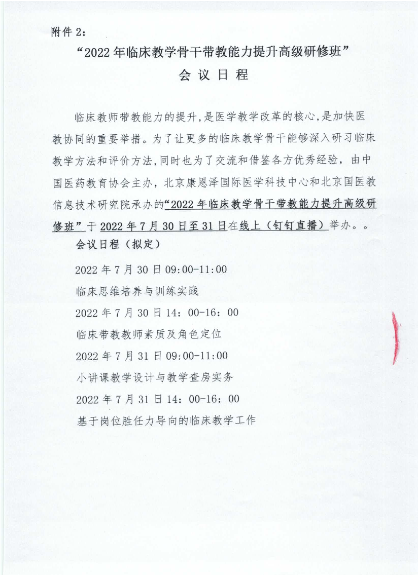 | 药教协培[2022]-第165号-2022年临床教学骨干带教能力提升高级研修班-会议日程 | |||||