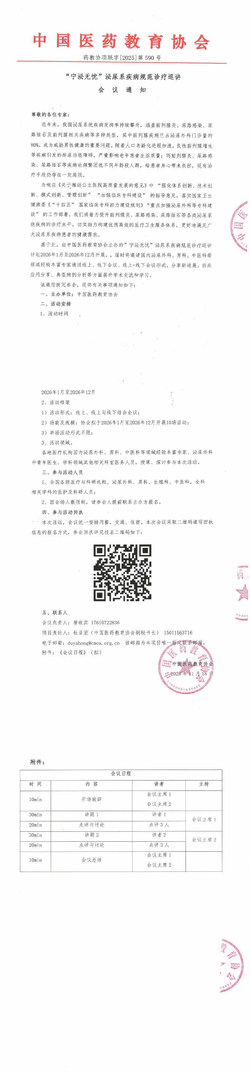 | 药教协项联字【2025】-第590号-“宁泌无忧”泌尿系疾病规范诊疗巡讲会议通知 | |||||
