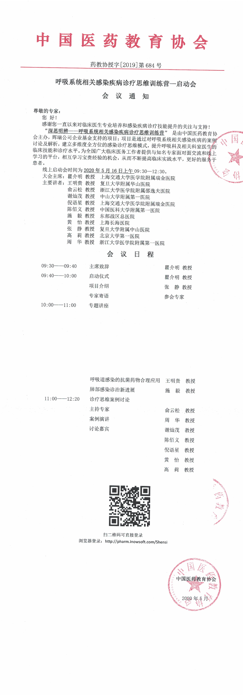 | 药教协授字[2019]-第684号-呼吸系统相关感染疾病诊疗思维训练营-会议通知 | |||||
