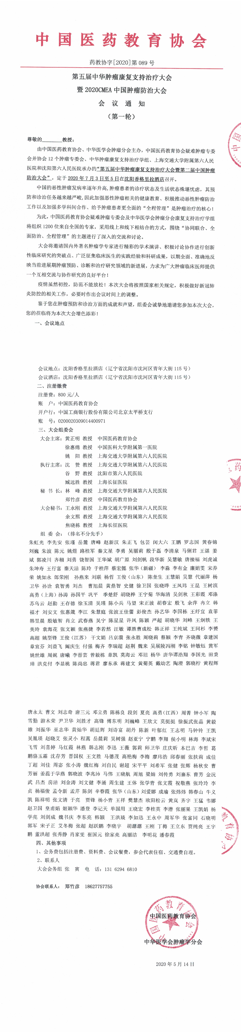 | 药教协字【2020】-第089号-第五届中华肿瘤康复支持治疗大会暨第二届中国肿瘤防治大会 | |||||