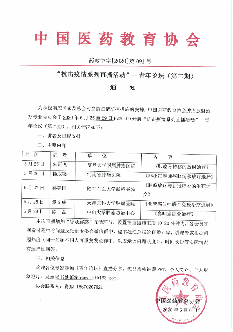 | 药教协字【2020】-第091号-“抗击疫情系列直播活动”--青年论坛(第二期) | |||||