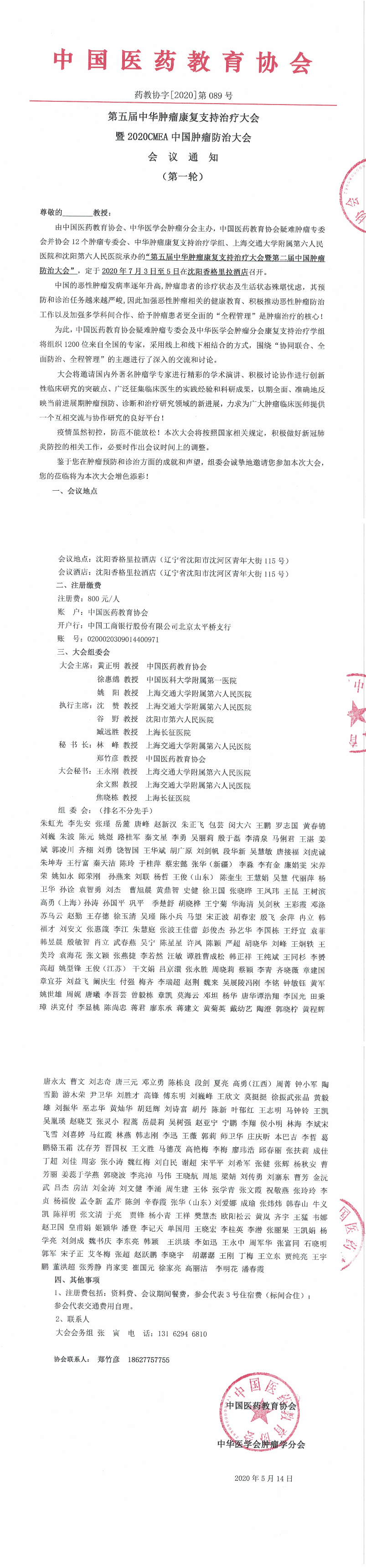 | 药教协授字[2020]-第58号-第五届中华肿瘤康复支持治疗大会暨第二届中国肿瘤防治大会 | |||||