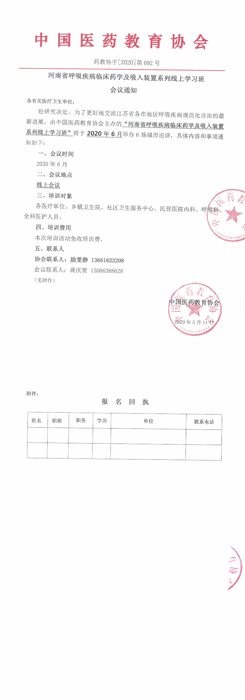 | 药教协授字[2020]-第092号-河南省呼吸疾病临床药学 | |||||