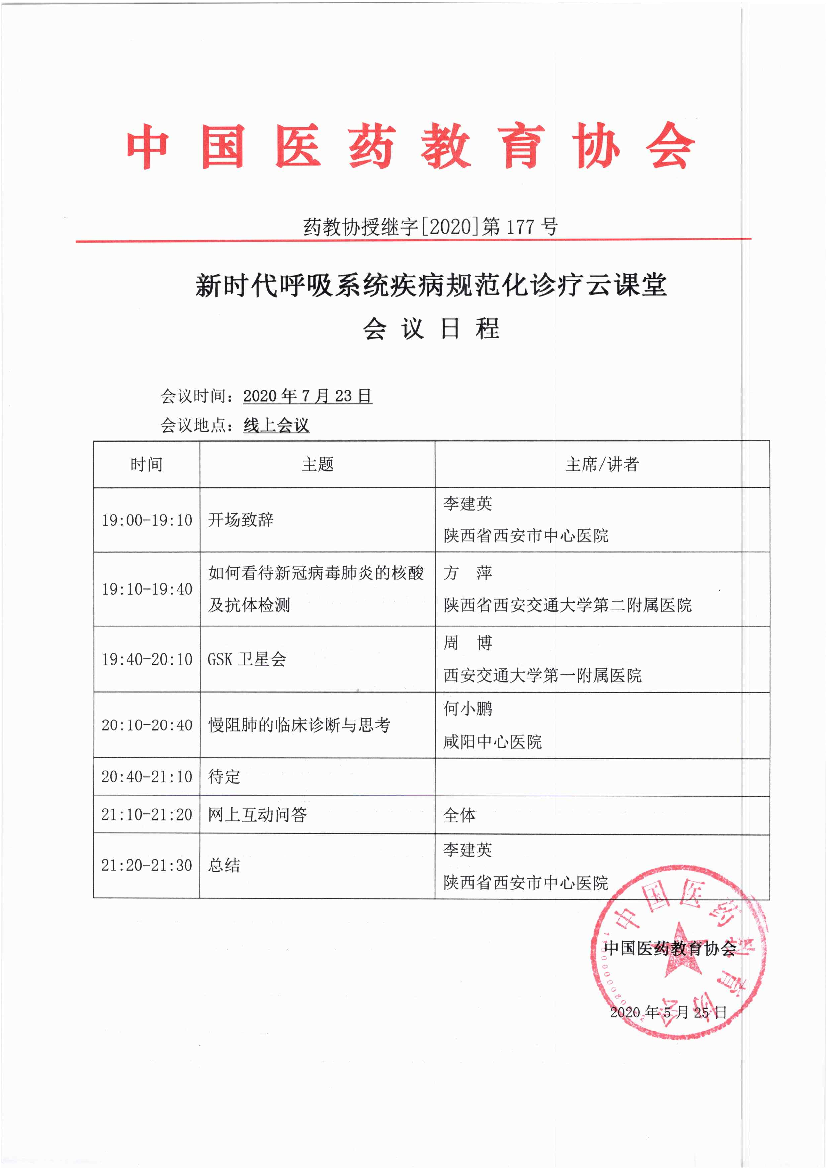 | 药教协授继字[2021]-第177号-新时代呼吸系统疾病规范化诊疗云课堂 | |||||