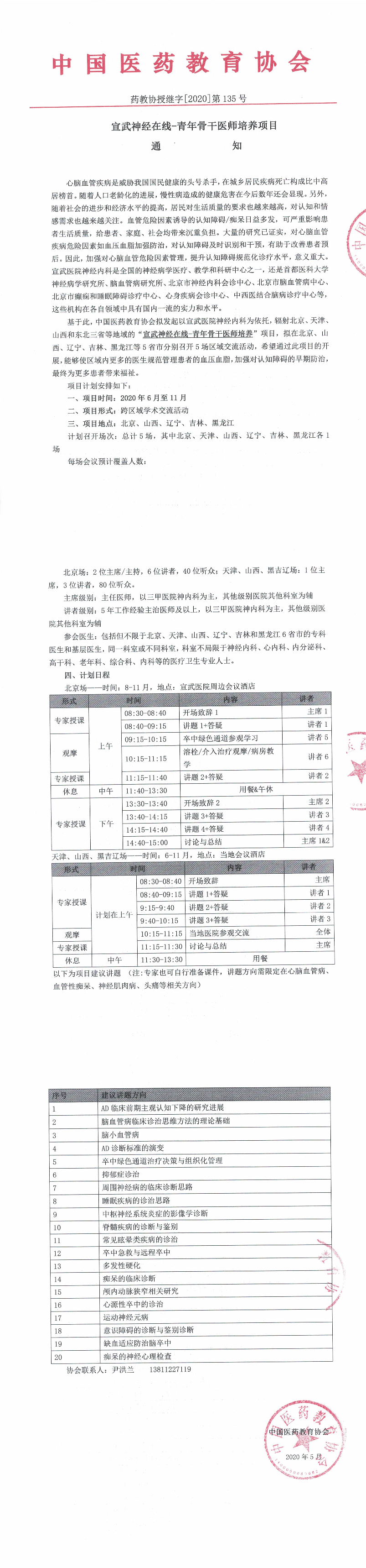 | 药教协授继字[2021]-第135号-宣武神经在线项目--青年骨干医师培养项目 | |||||