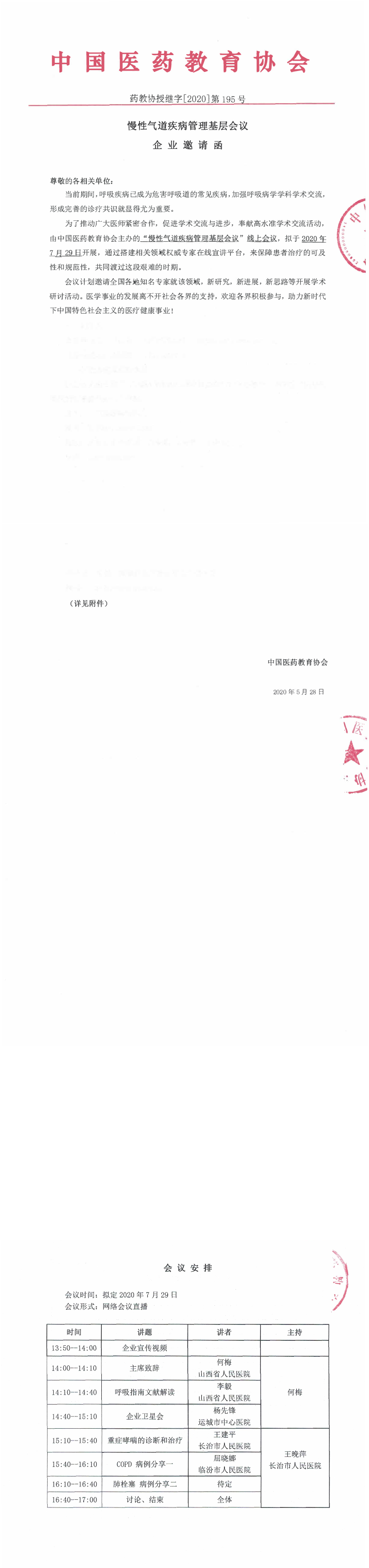 | 药教协授继字[2021]-第195号-慢性气道疾病管理基层项目邀请函 | |||||