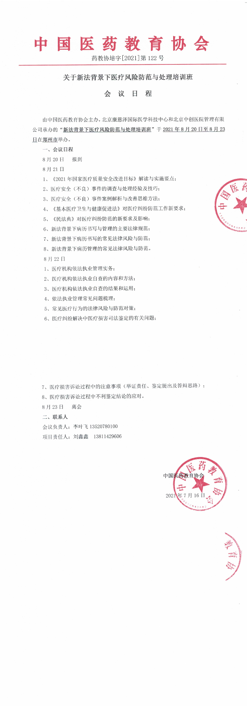 | 药教协培字[2021]-第121号-新法背景下医疗风险防范与处理培训班 | |||||