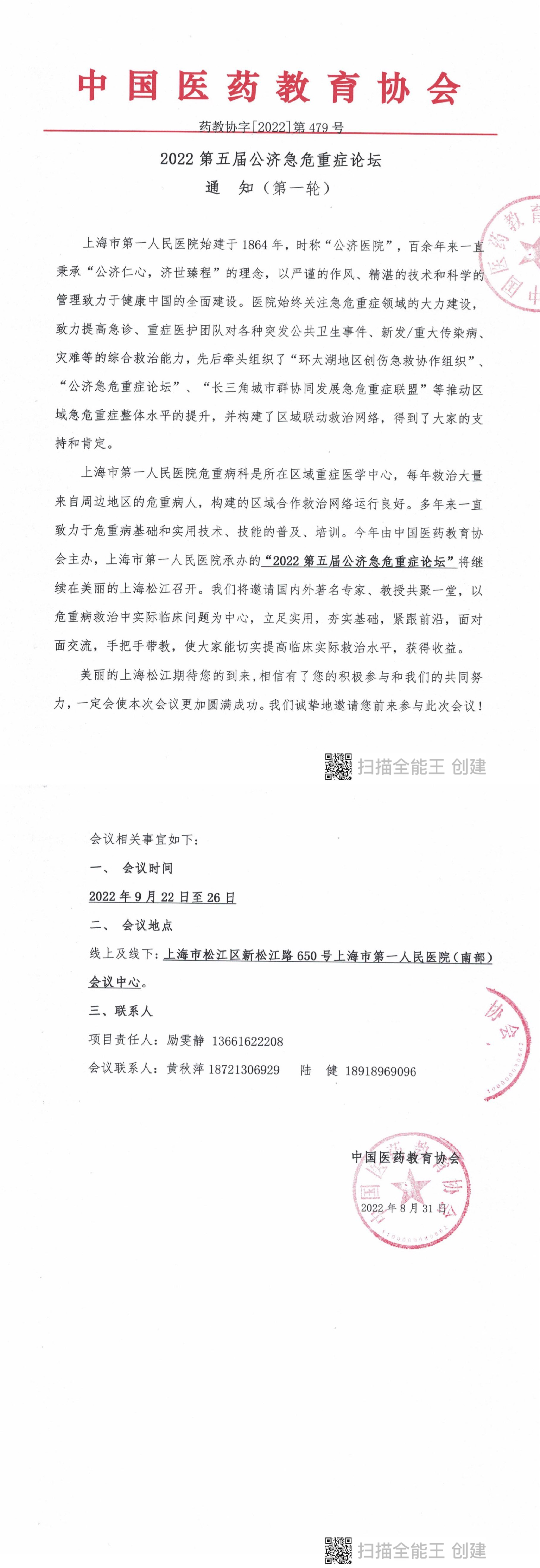 | 药教协[2022]-第478号-第五届公济急危重症高峰论坛 | |||||