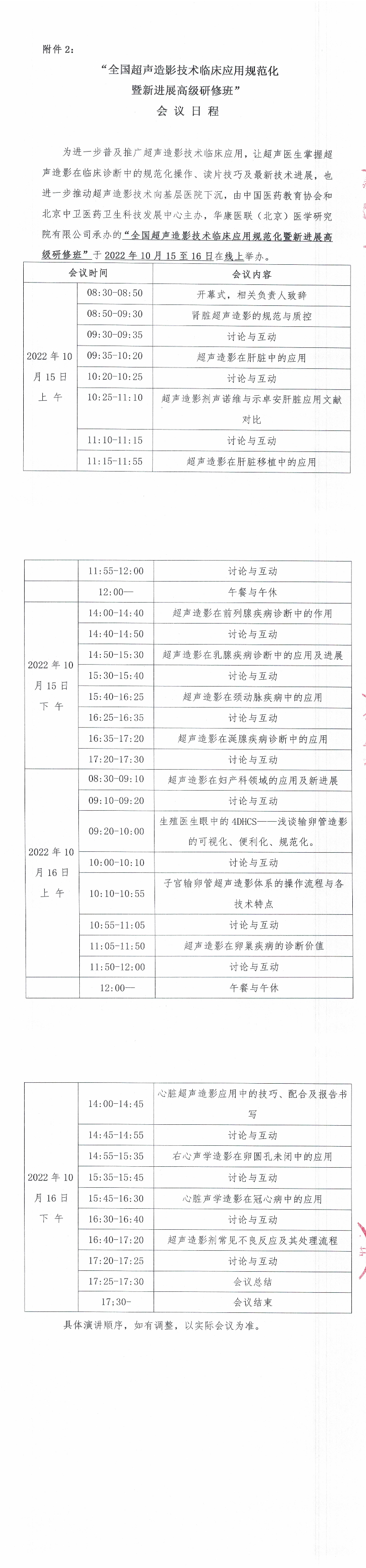 | 药教协培[2022]-第260号-全国超声造影技术临床应用规范化暨新进展高级研修班-会议日程 | |||||