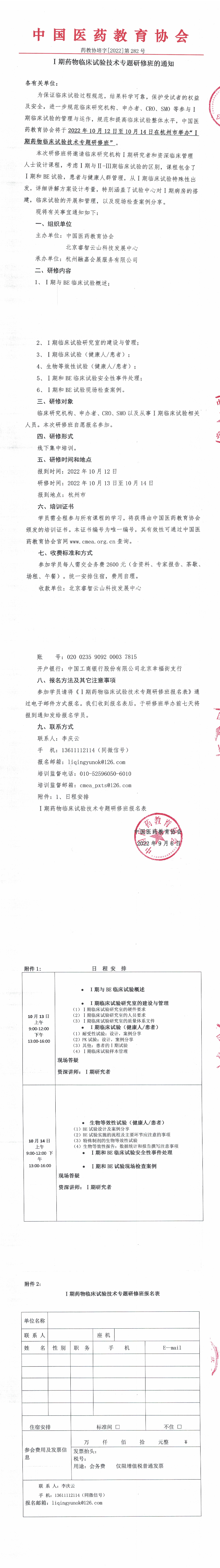 | 药教协培[2022]-第282号-Ⅰ期药物临床试验技术专题研修班 | |||||