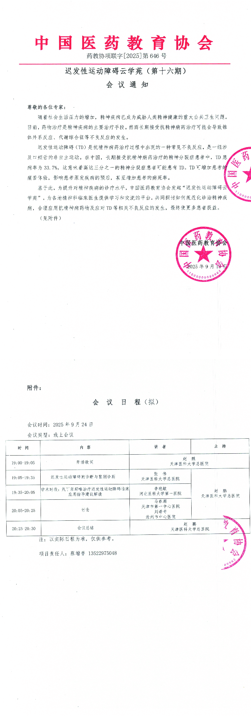 | 药教协项联字【2025】-第646号-迟发性运动障碍云学苑(第十六期) | |||||