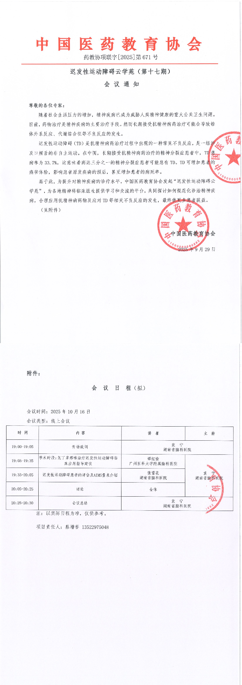 药教协项联字【2025】-第671号-迟发性运动障碍云学苑(第十七期) | |||||
