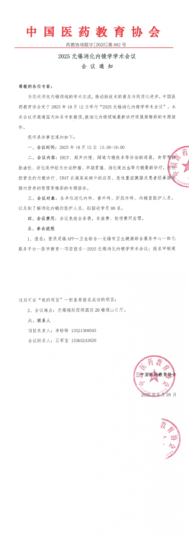药教协项联字【2025】-第682号-2025无锡消化内镜学学术会议 | |||||